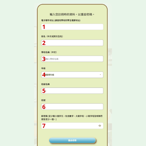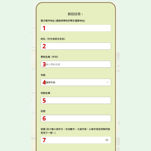 5) 輸入你的班別,先填數字,再填英文或中文班別,例如「1A」、「2丁」