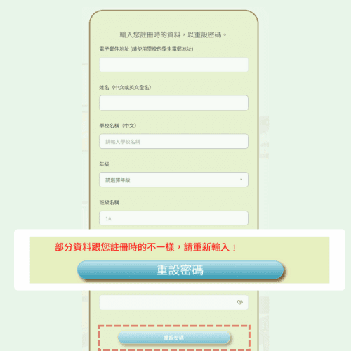 如果你看到這句提示:「部分資料跟您註冊時的不一樣,請重新輸入﹗」,請檢查空格內輸入的資料,必須跟你註冊時輸入的一模一樣。