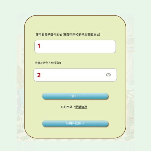 1) 輸入你註冊時的學生電郵地址,例如「chanhoming@school.com」